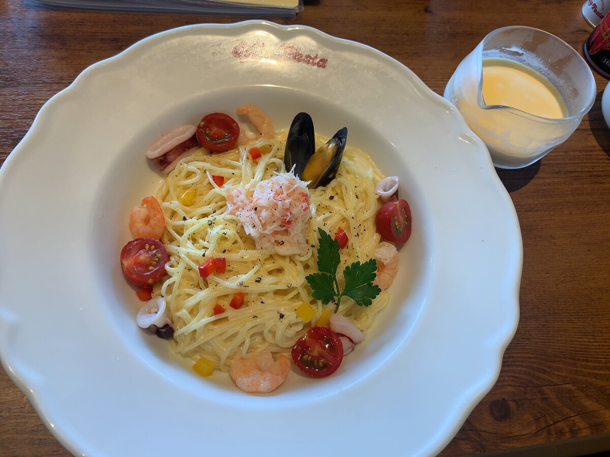 冷製パスタの時は、お腹温めたいので、温かいスープが嬉しい。