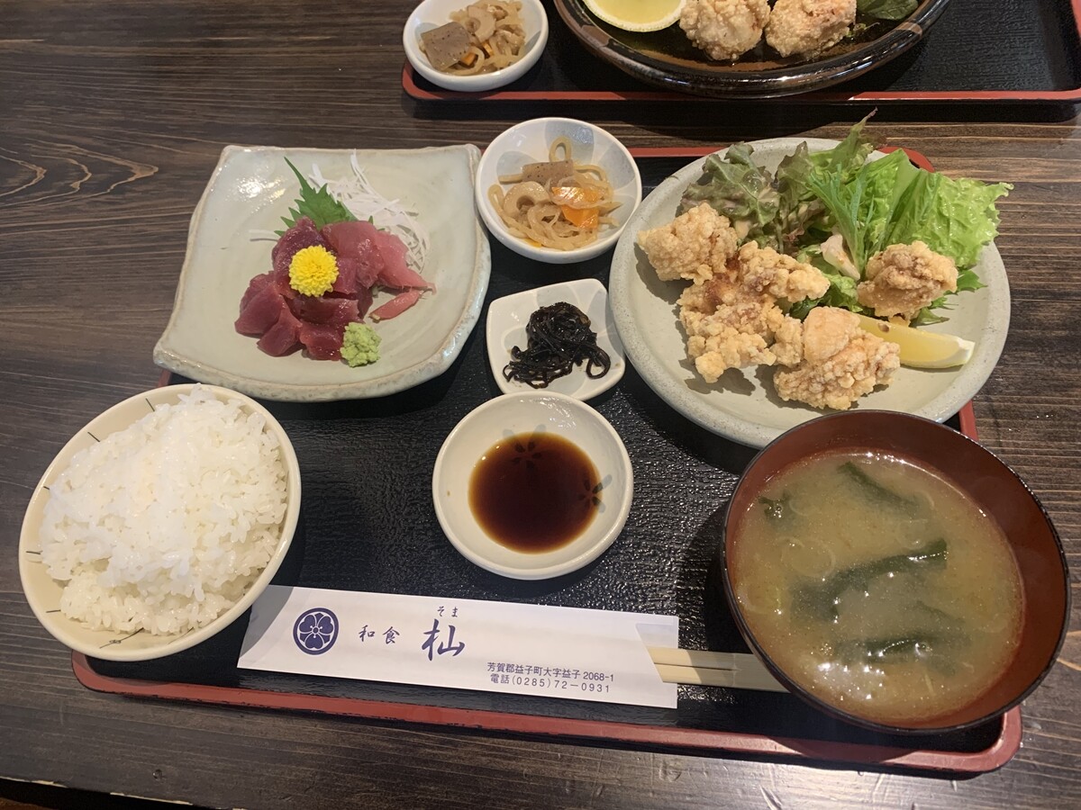 まぐろのぶつと鶏の唐揚げ定食にいたしました。