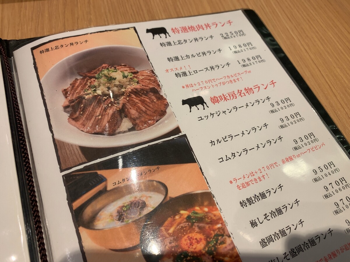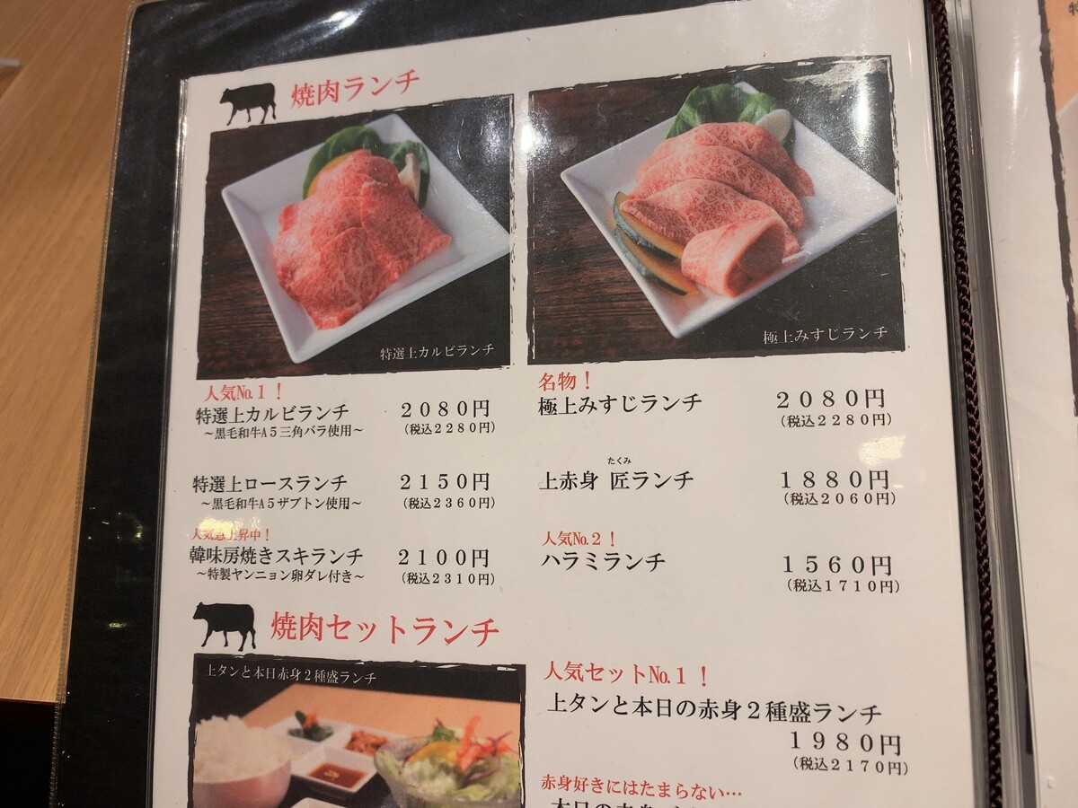 ・上カルビと赤身のランチ1980円+税