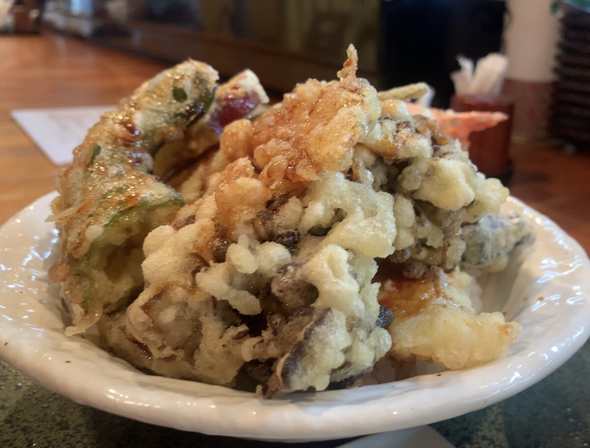 1100円の天重+刺身小鉢350円で追加。なぜなら、お互いの価格を公平にするため(割り勘ゆえに)。