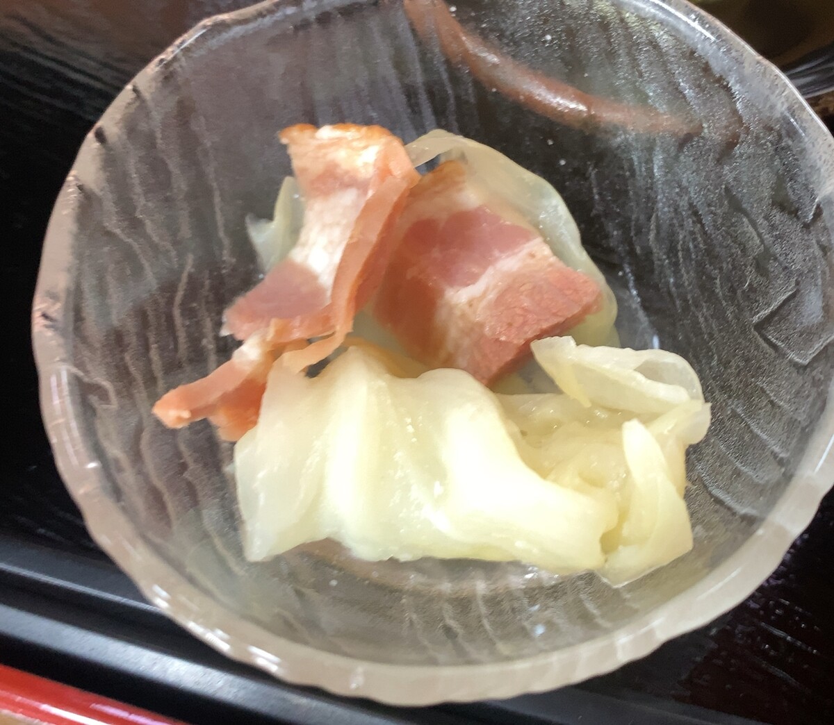 小皿でついていた、キャベツとベーコンのコンソメ煮みたいなものが非常に気に入ってしまい、この定食があればいいなーと思うのでした。