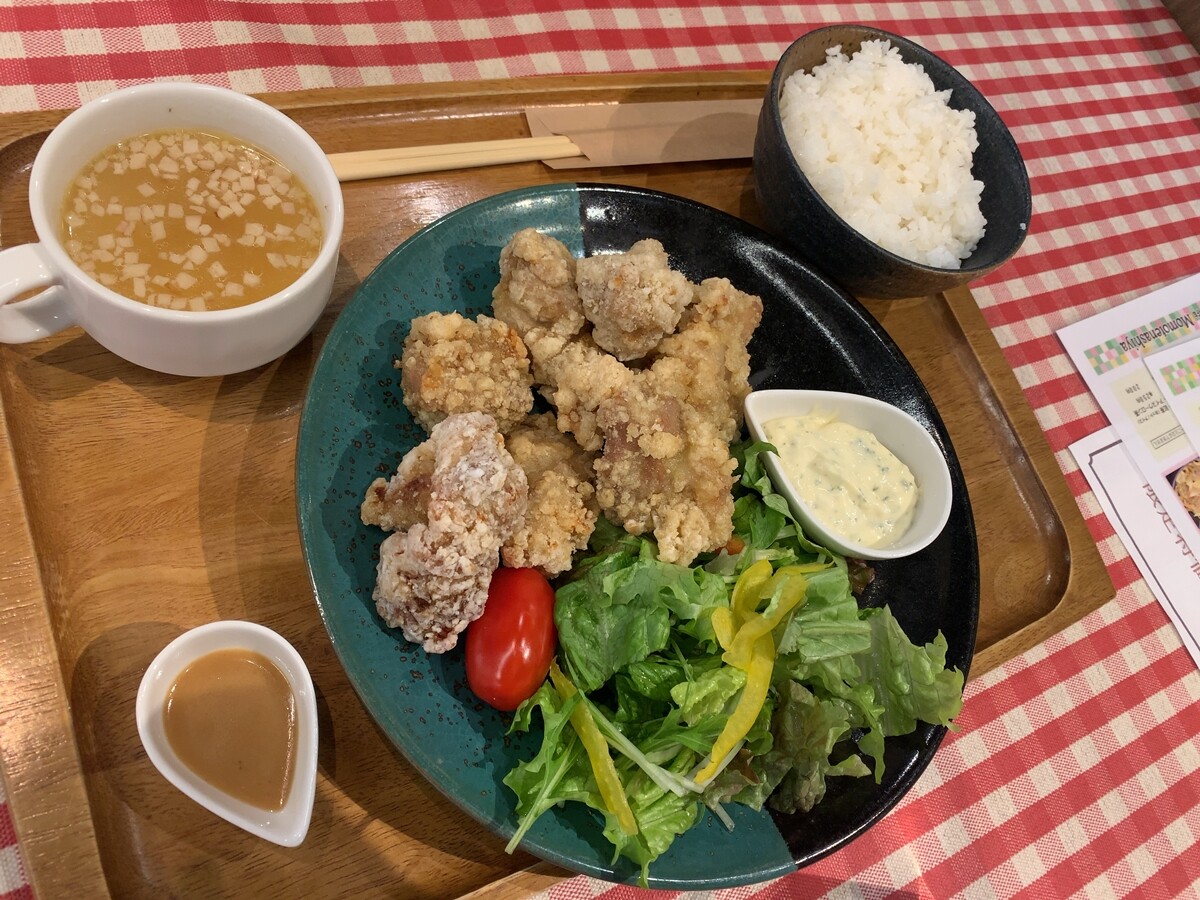 夫は鳥取代表・「大山ハーブ鶏の唐揚げ定食」でした。