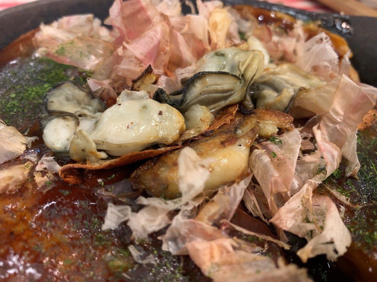 あああっ。岡山県日生名物、牡蠣のお好み焼き「カキオコ」がある!