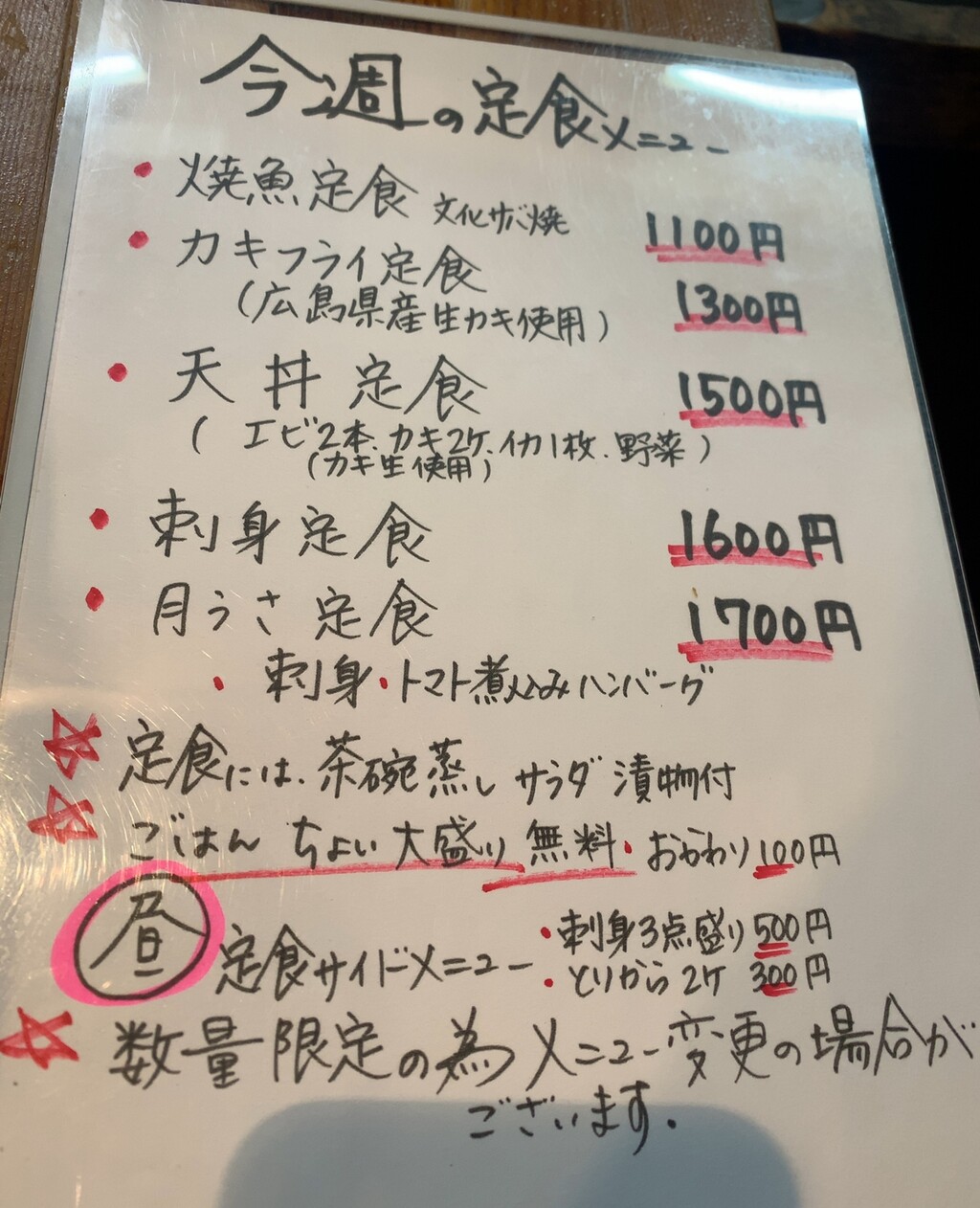 土日の定食(金夜もある)、平日のお弁当(木曜日のぞく)と楽しませていただいている