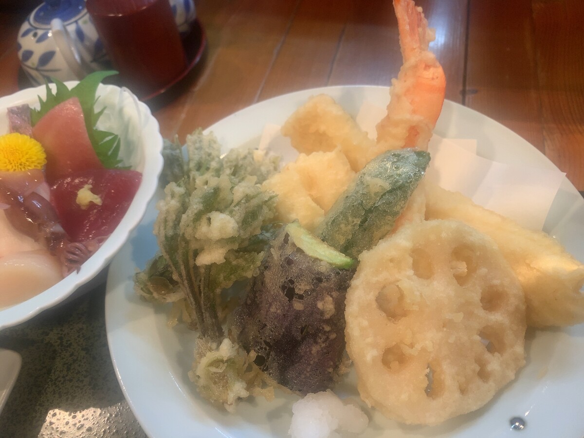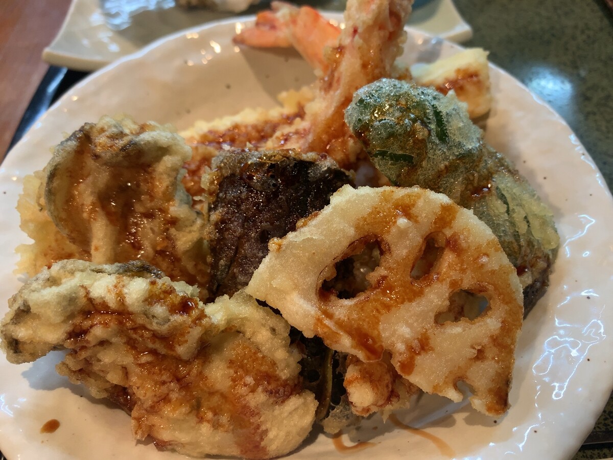 天丼の野菜天と、少しトレードしてもらいました。