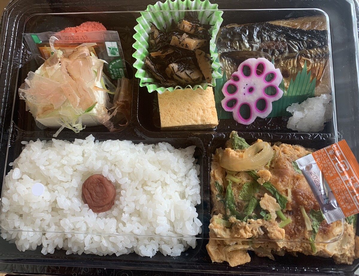 この日は、ヒレカツ煮、焼鯖、出汁巻玉子、明太子、やっこ、などなど四番打者が揃った幕の内を買いに行きました(ご飯少な目発動)。