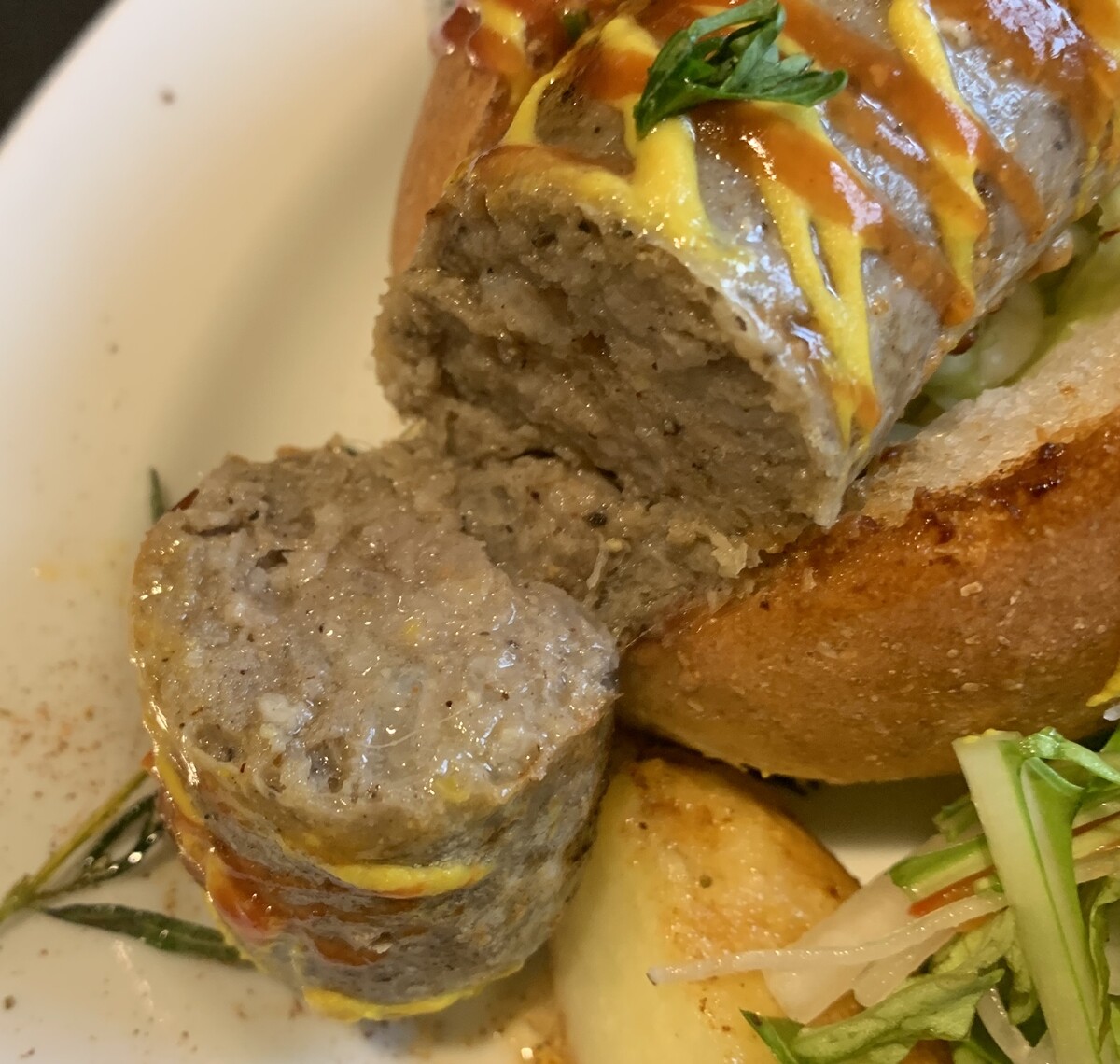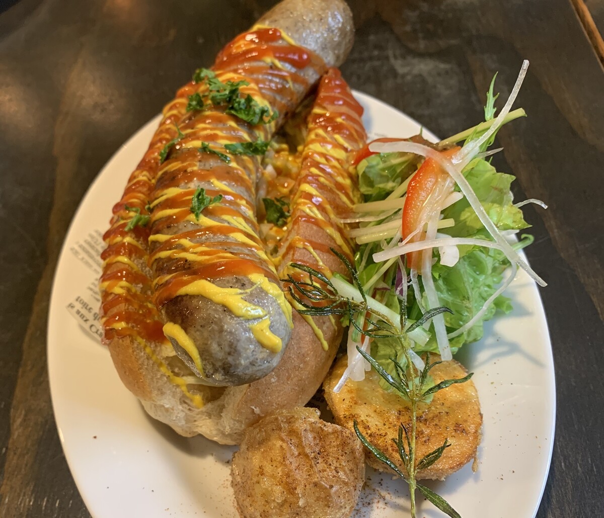 そして、私の「自家製ハーブソーセージのホットドッグ」。
