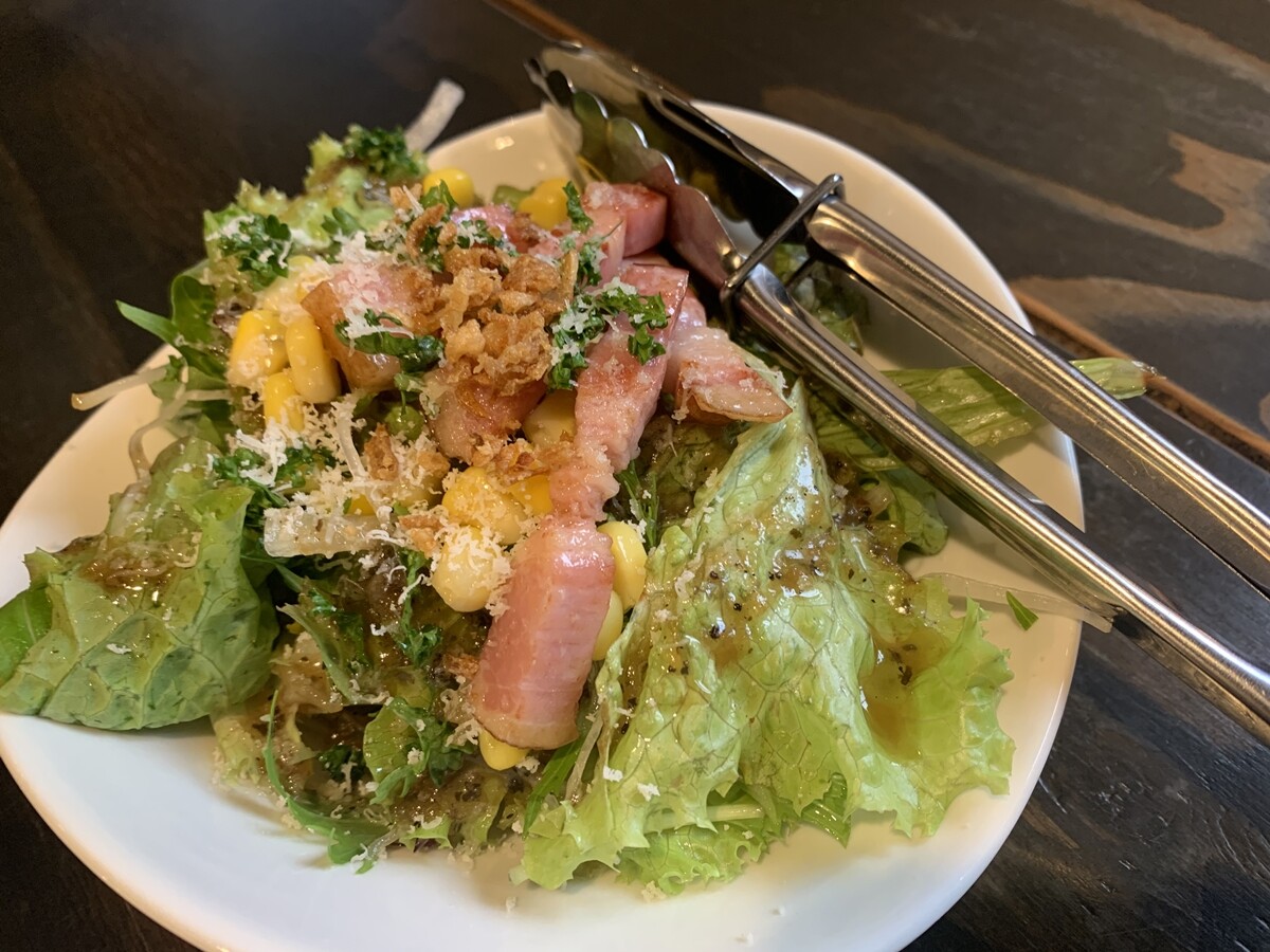 って、サラダつけましょうか。ハーフサイズください。