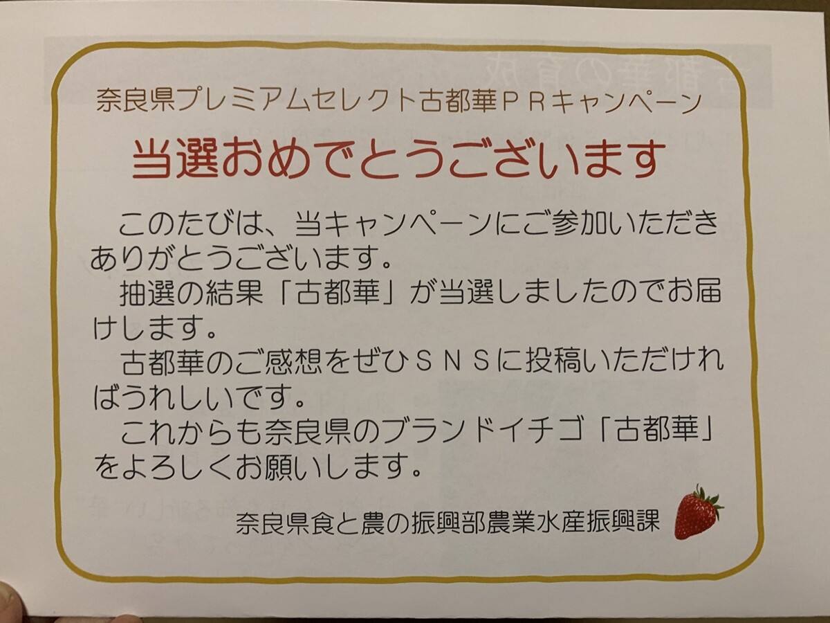 古都華を食べられるだけで幸せだ~と言いつつ、ダメ元でPRキャンペーンに応募したら
