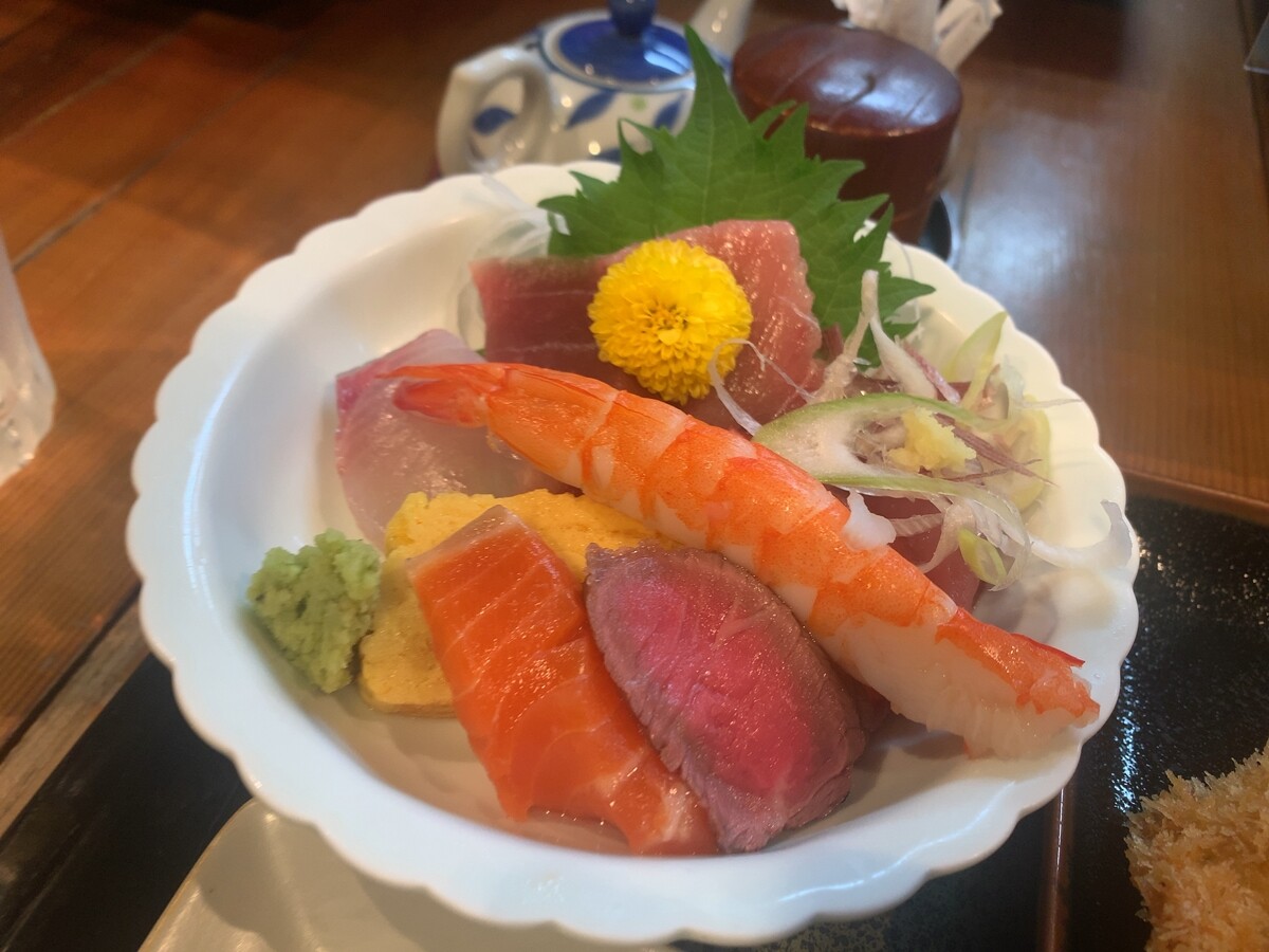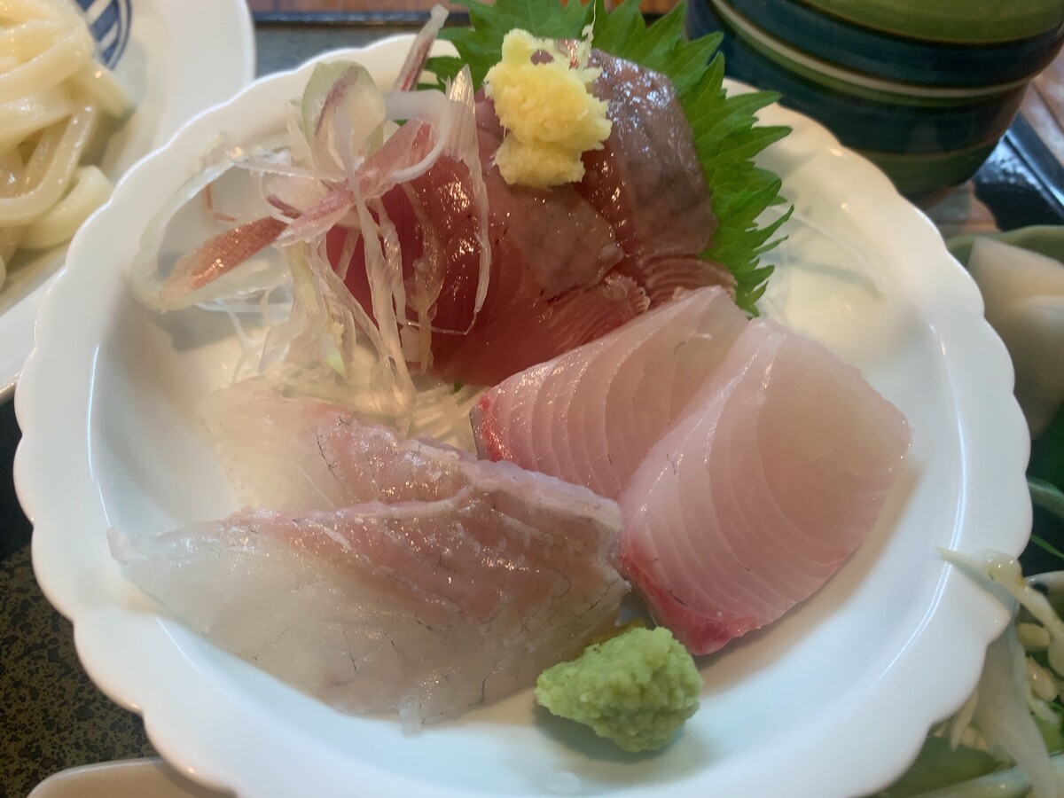 お刺身三点盛りで、さっぱりとたんぱく質補給。
