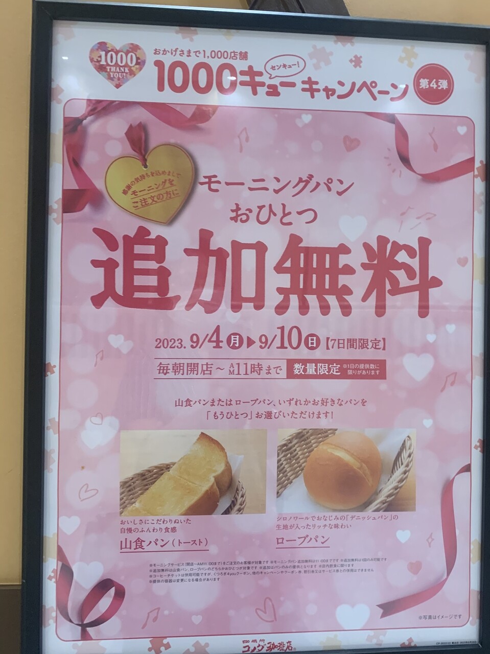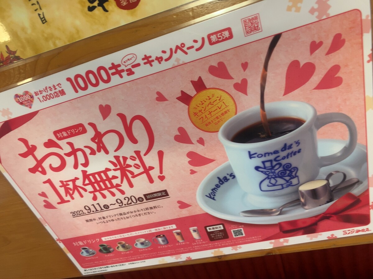 コメダ珈琲店が1000店突破したということで、期間限定のキャンペーンがいろいろありました。