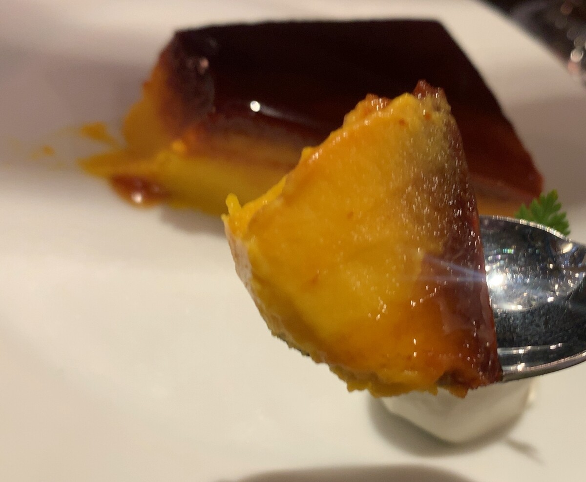 非常にかぼかぼしい、かぼちゃ風味に溢れたザラついた食感のかぼちゃプリンです。
