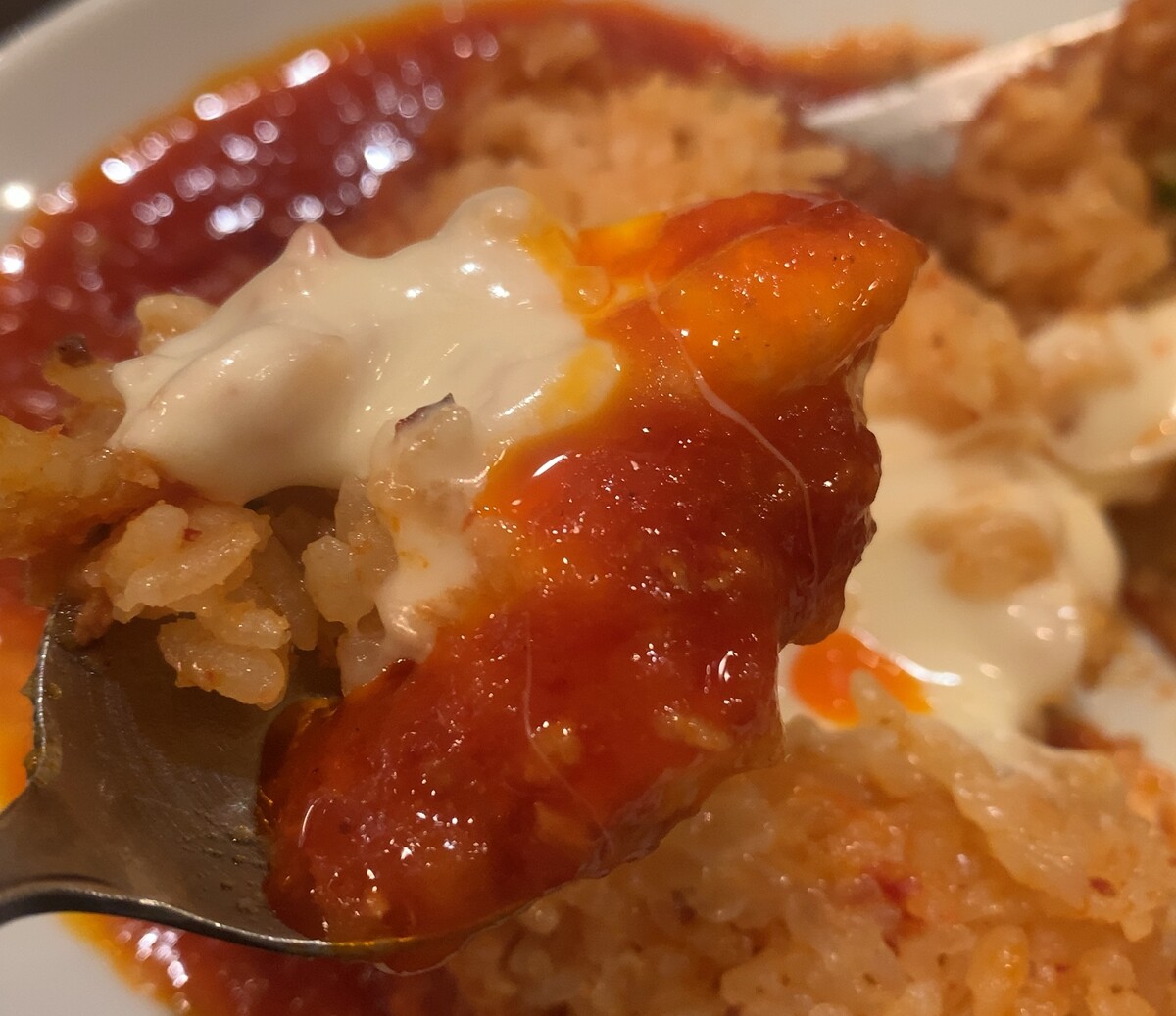 カリカリ衣と、酸味溢れるソースとチーズびよん。