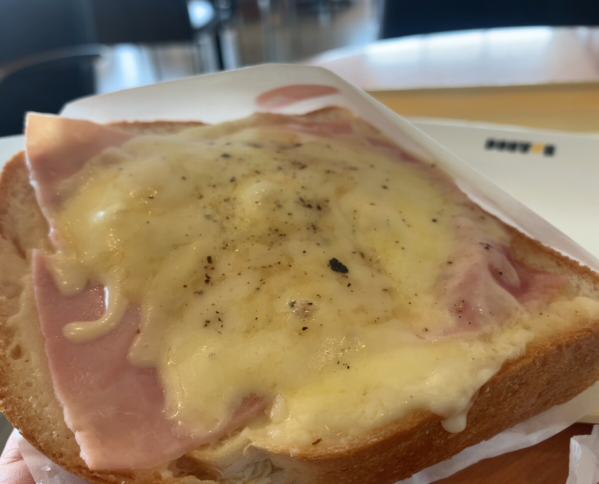 まだ朝が涼しいうちに食べておこうと、新メニューのクロックムッシュ。