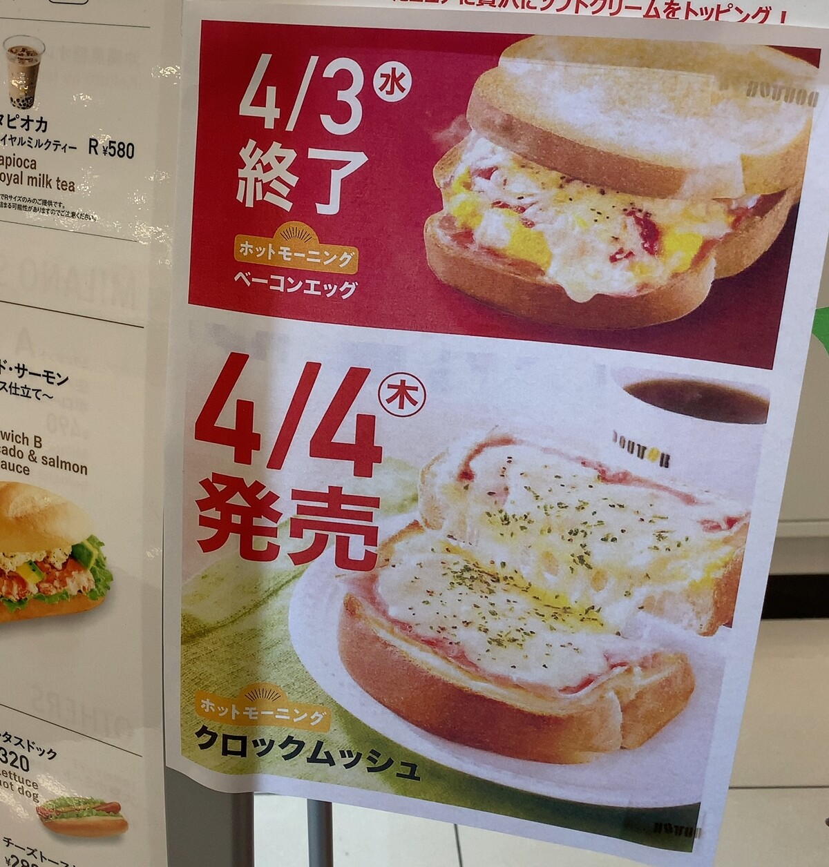 そして、ドトールメニュー更改時における