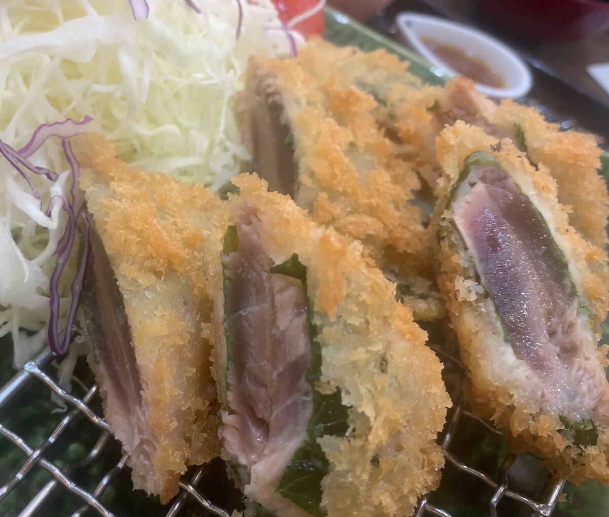 鰹の梅はさみ揚げ定食。