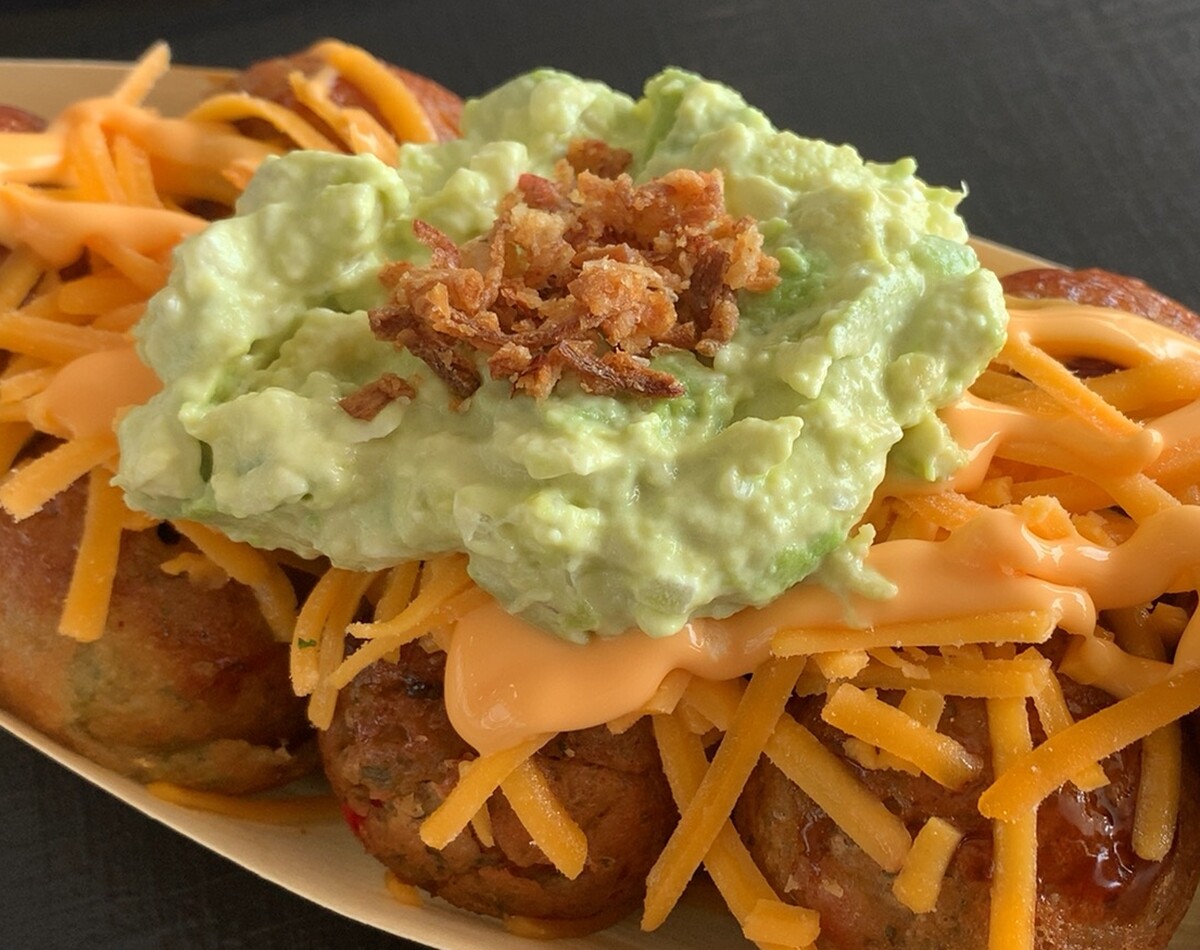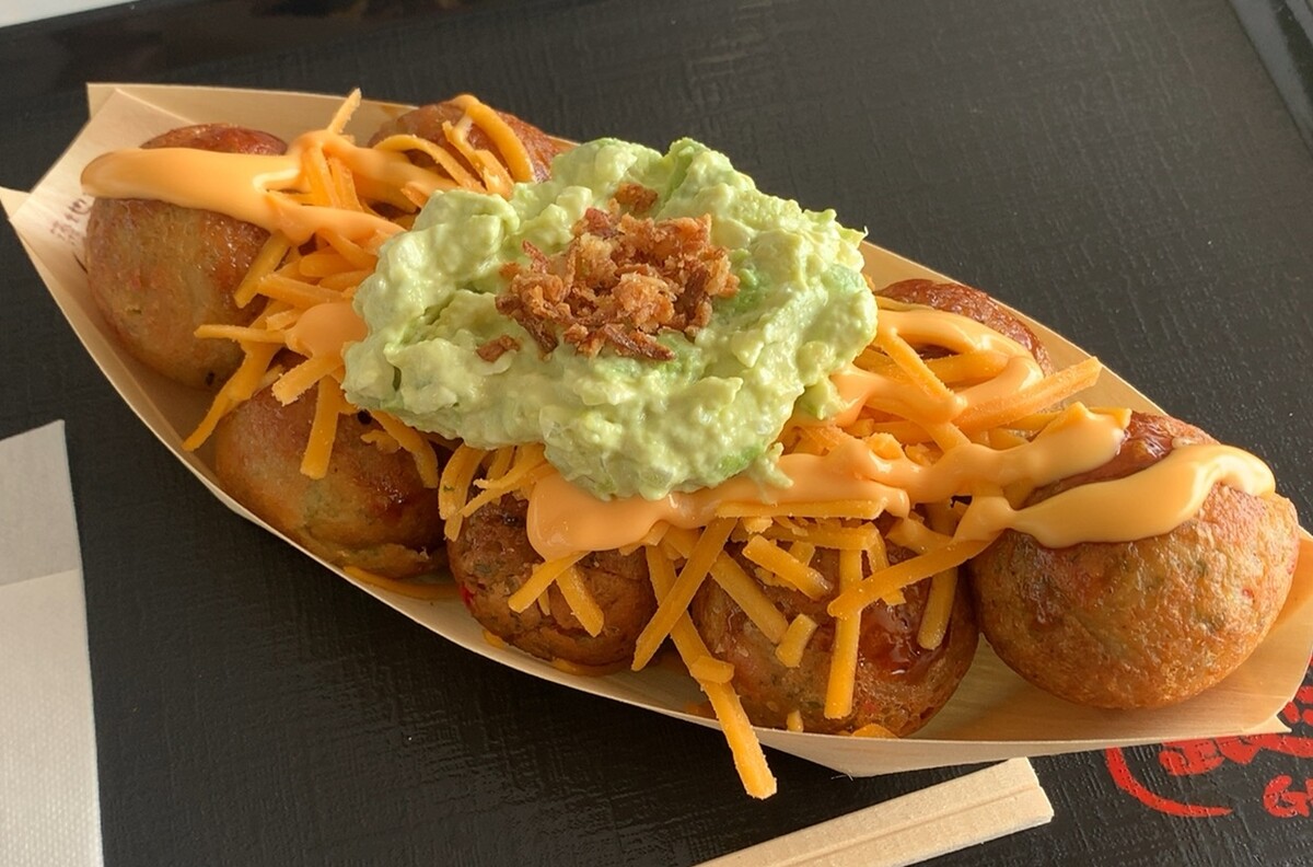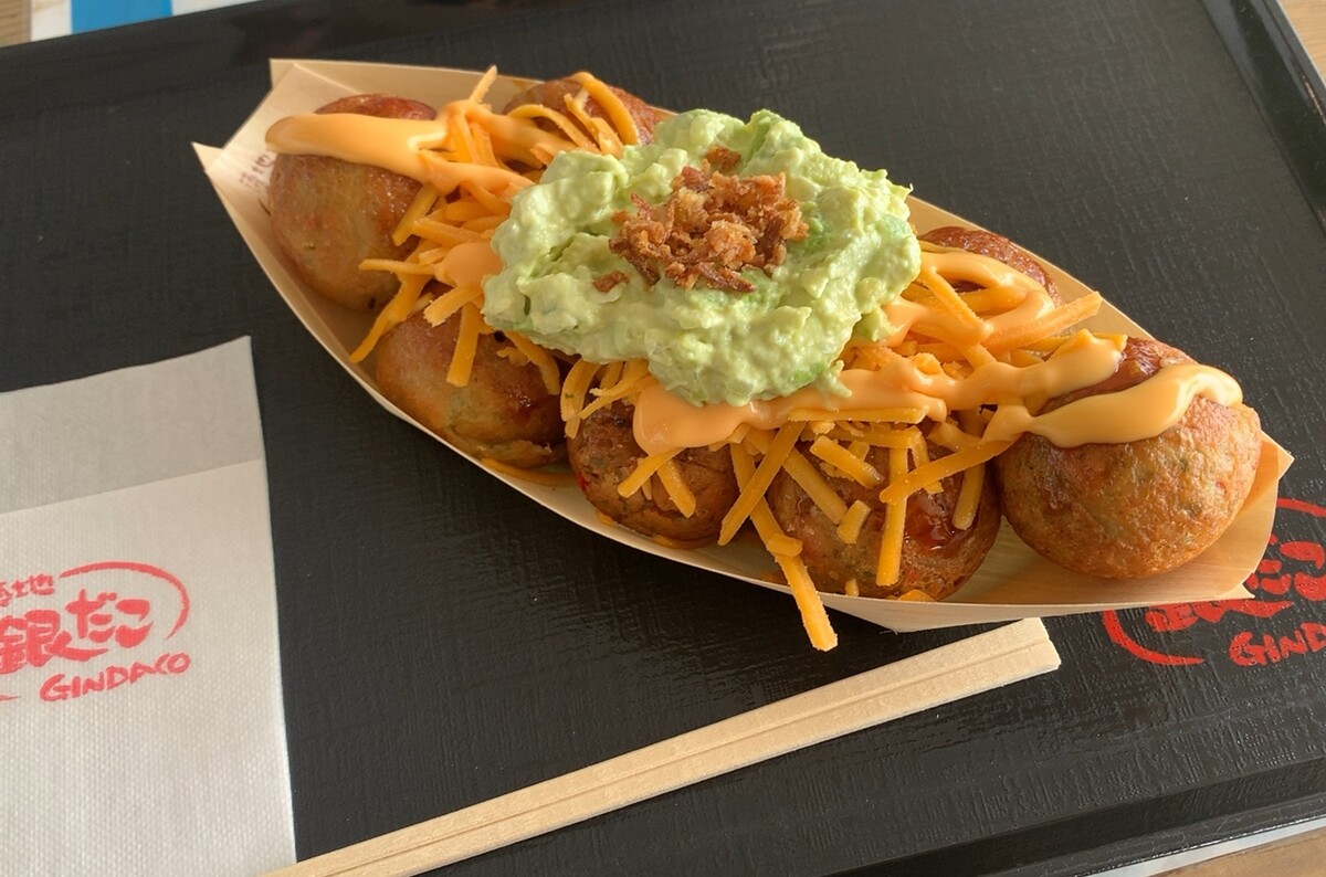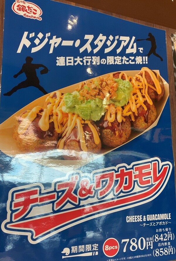 築地銀だこでドジャー・スタジアム限定のタコ焼き「チーズ&ワカモレ」があるんだとか。