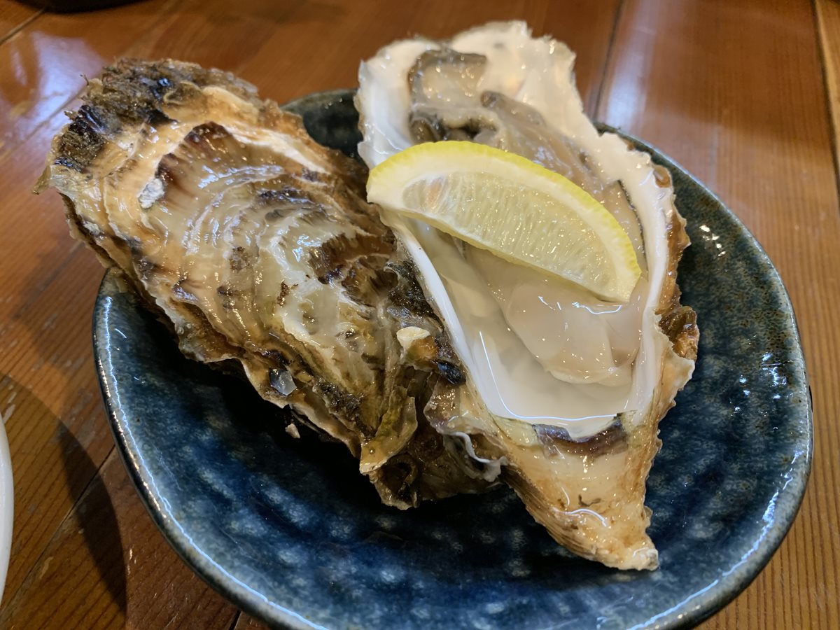 夫注文の生牡蠣。
