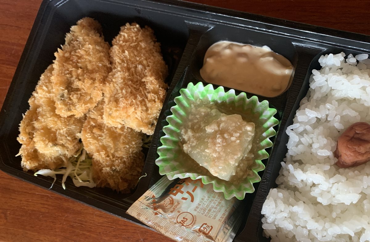 大きい、味が濃い、うまい、三拍子そろったカキフライ4つが入ったお弁当が1000円ジャストってすごすぎる。