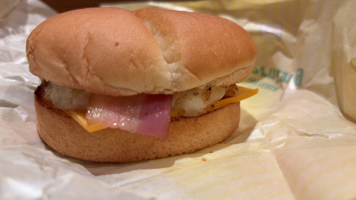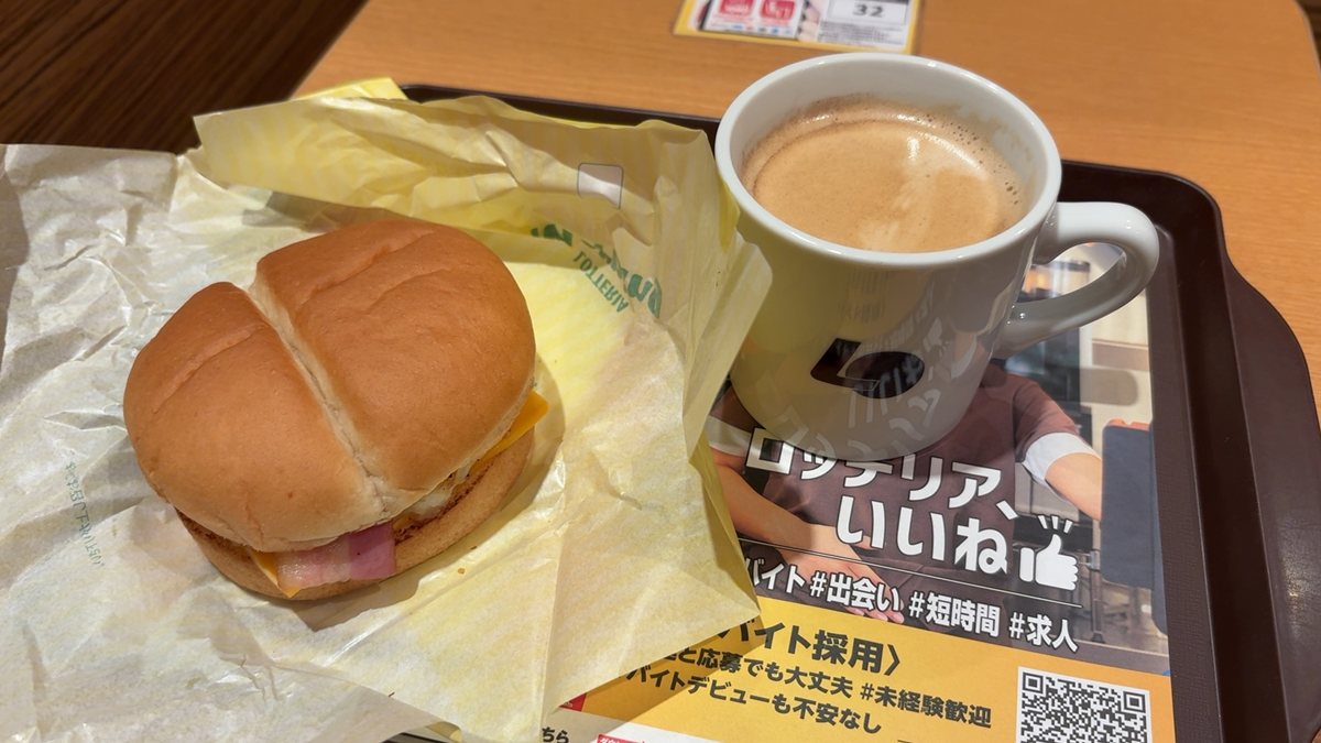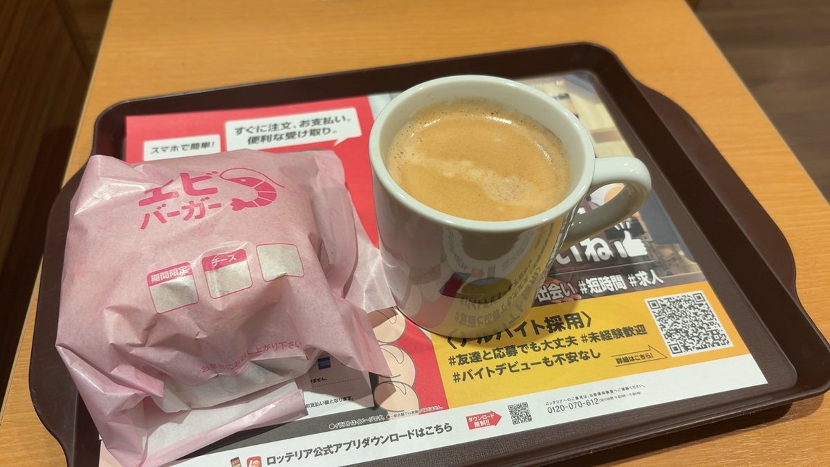 朝からチーズバーガーは食べられないな、と思いながら海老バーガーを食べ食べ