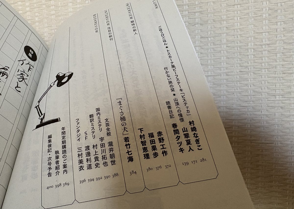 文芸誌「紙魚の手帖」4月号(4/11発売)、コラム「ごほうびごはん」に