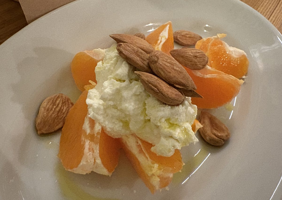 酸味と香味溢れるミカンと、コクのあるリコッタチーズと、コリコリ食感のアーモンドで
