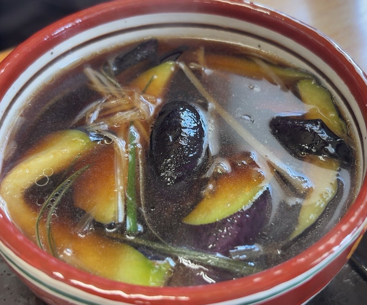 なす汁うどんLOVERの夫は、なす汁うどん大盛で即決。