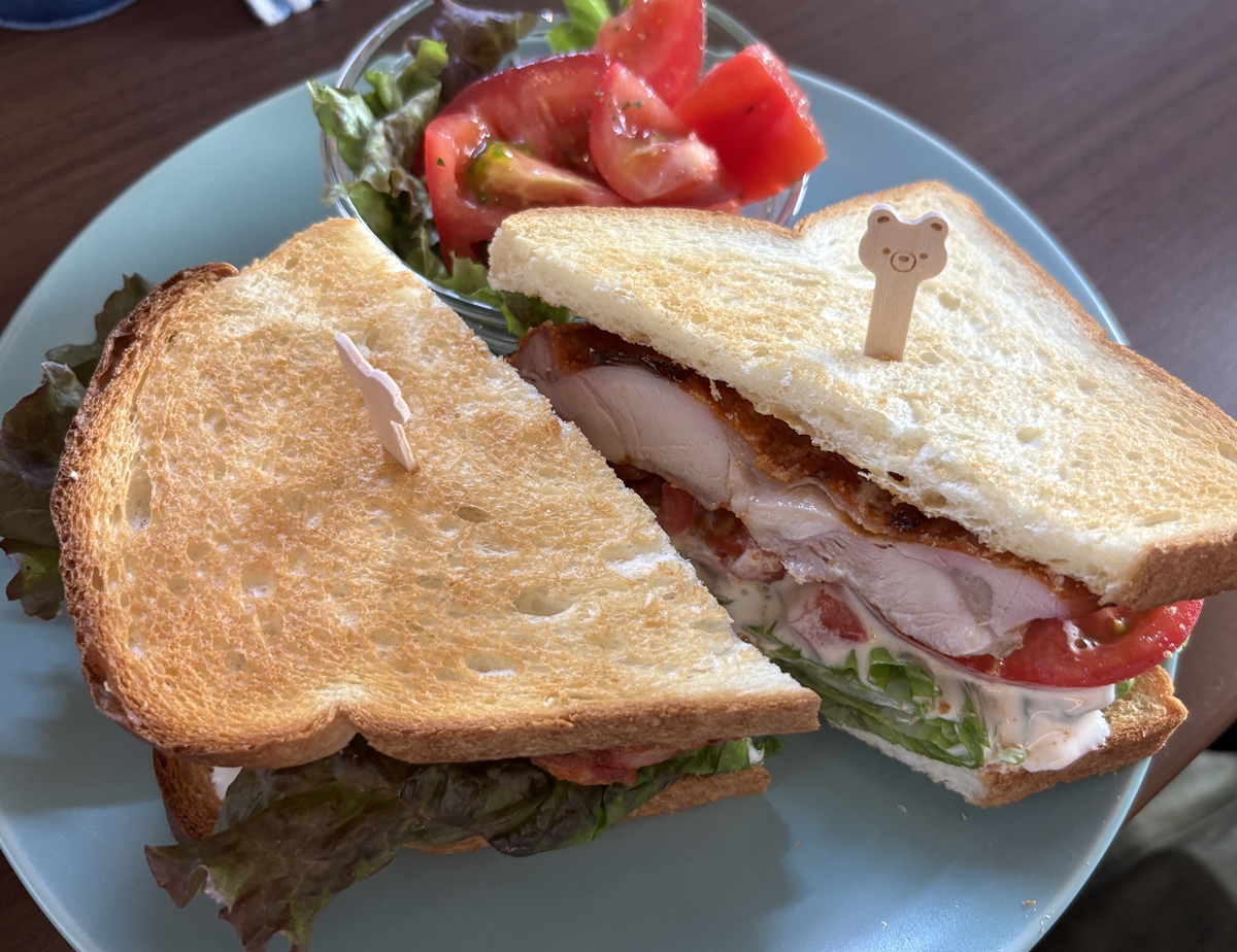 夫の方のタンドリーチキンサンドもすんごいボリューム。