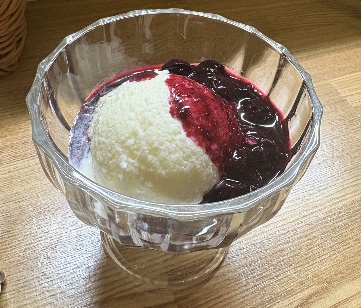 こちらはミルクジェラートのブルーベリーソース(夫)。