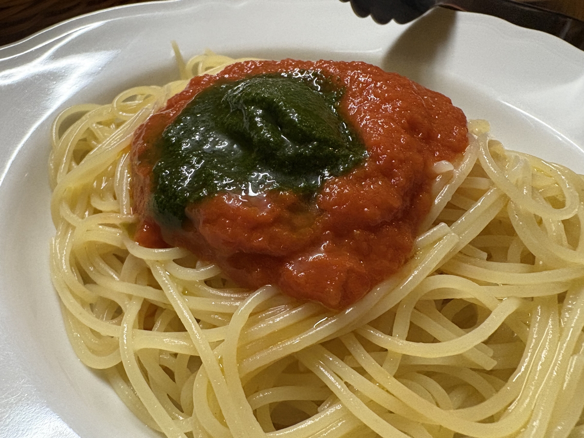 夫のみ、パスタ(トマトソースとバジルソース)。
