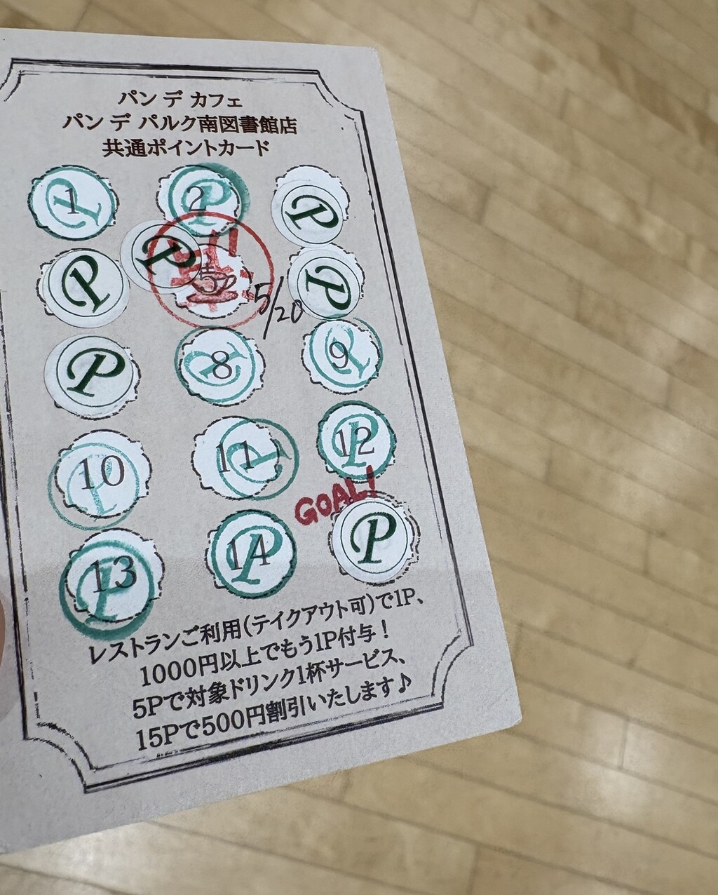 同じく愛用しているパンデカフェさんと共通ポイントカードなので
