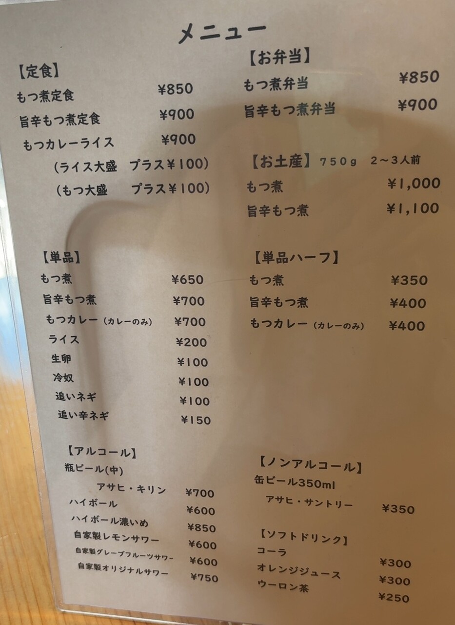 もつ煮定食かカレー。両方気になる。