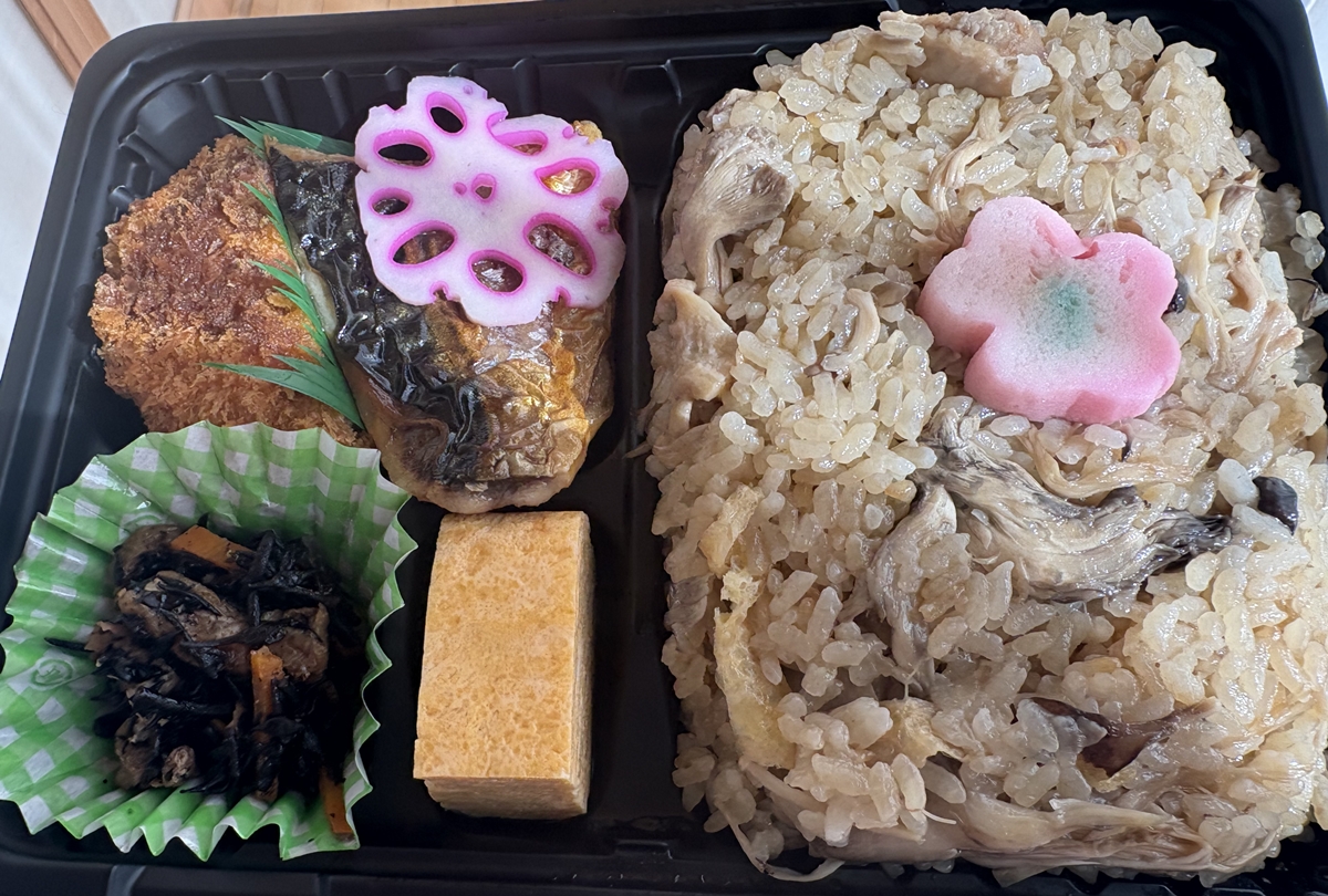 鶏ときのこの炊き込みご飯弁当(1000円)。