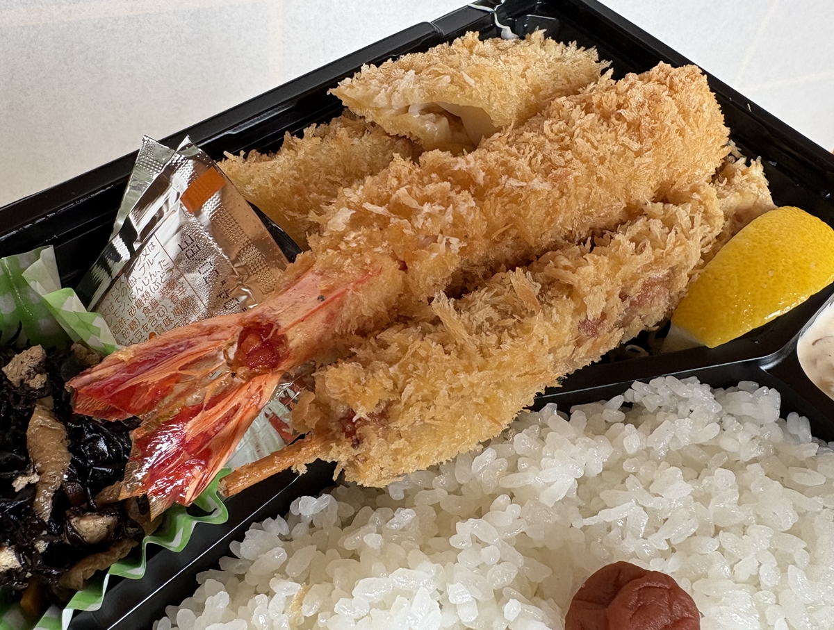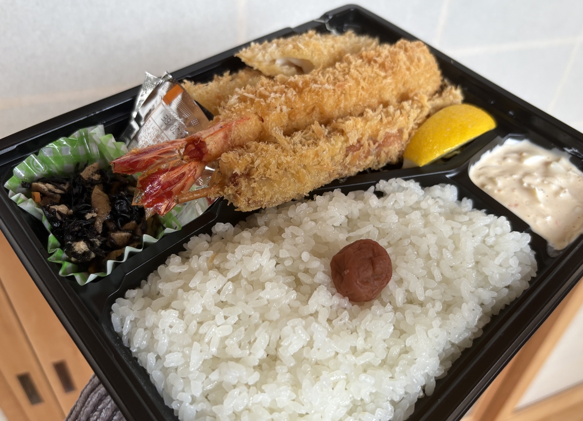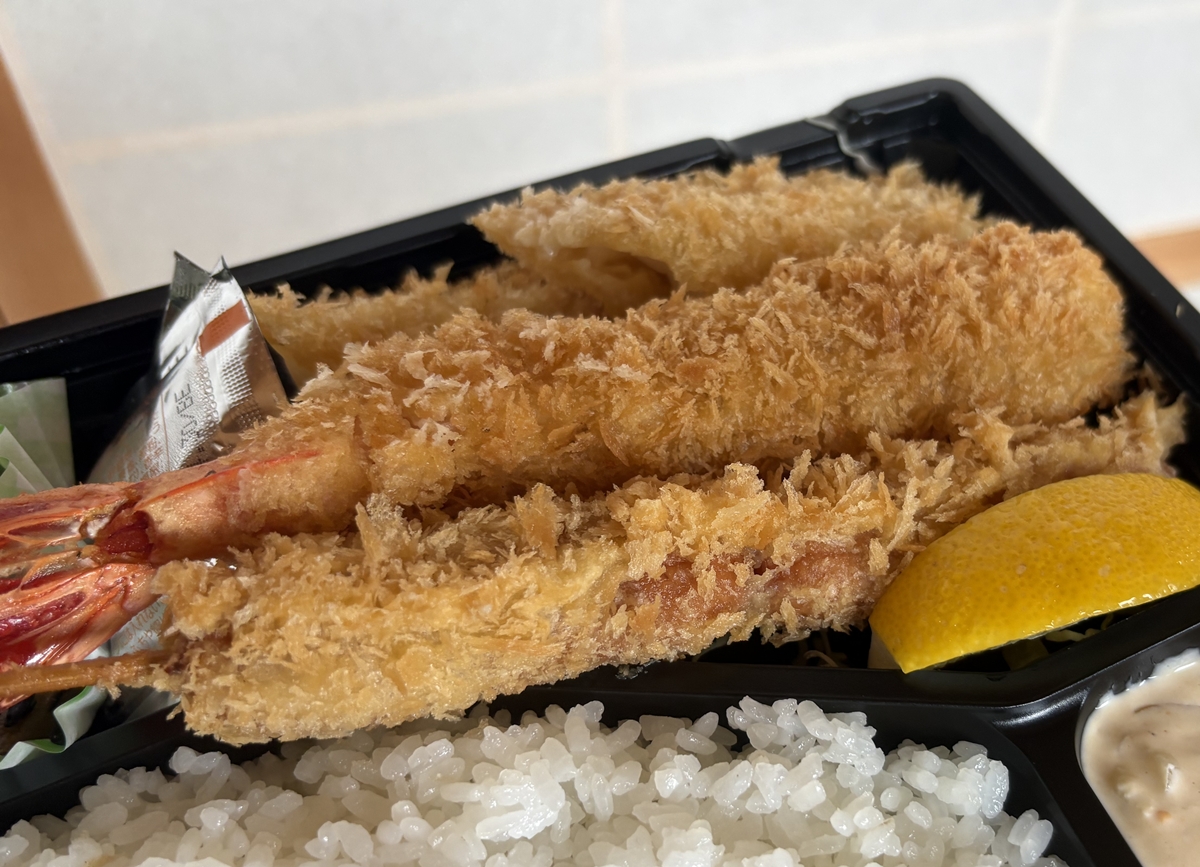 私はミックスフライ(海老・イカ・ソーセージ)弁当1000円。
