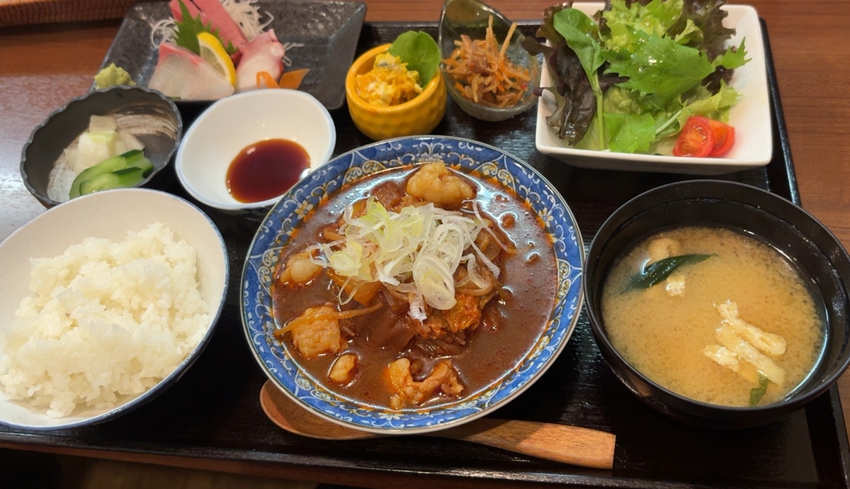 辛みそ牛もつ煮!?しかも刺身つき!