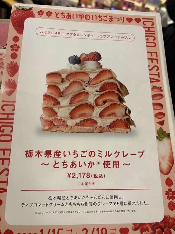 期間内にまた東京に行けるようなら、表参道の方で「いちごさん」を食べてみたい。