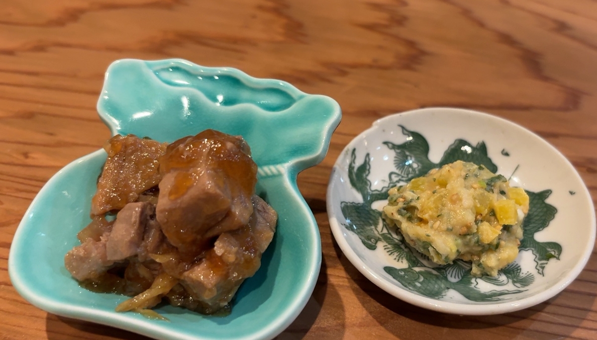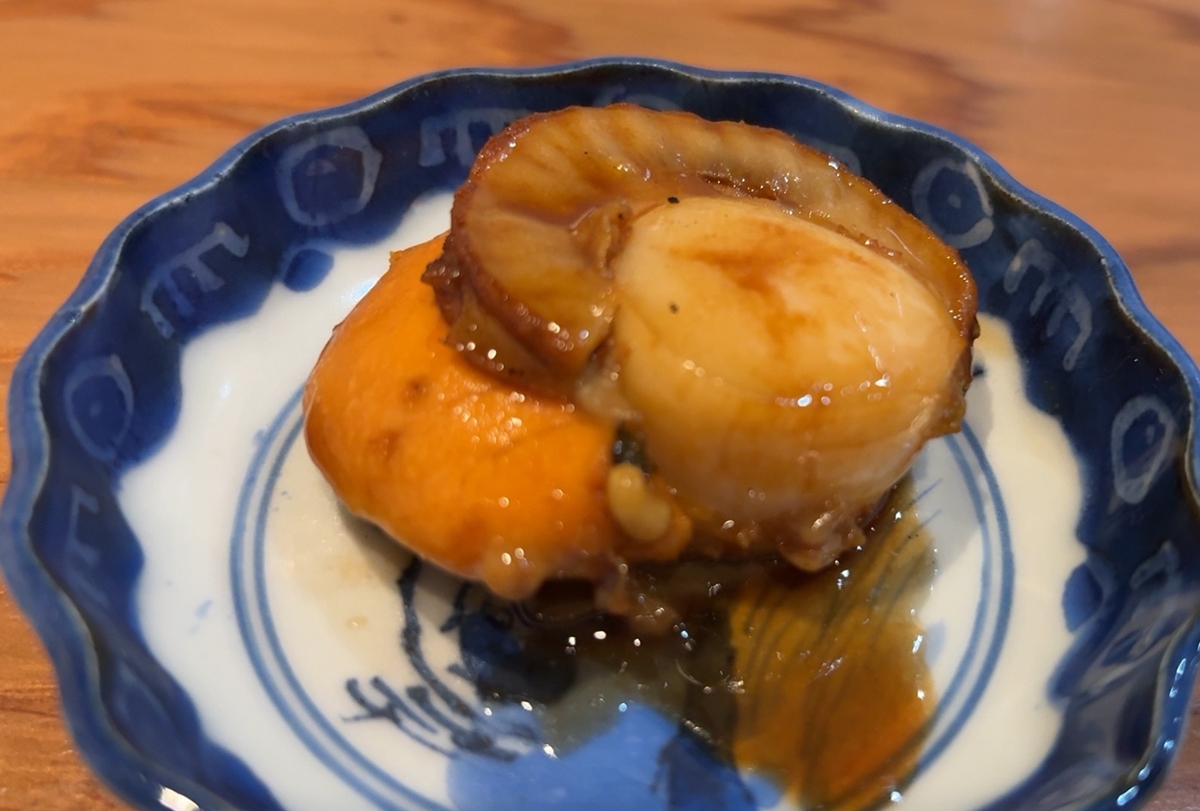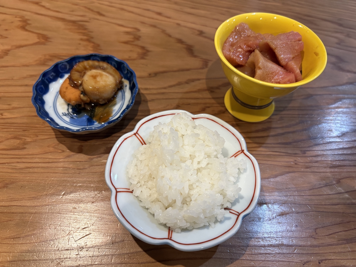 まずは、帆立のバター醤油焼きと中トロの漬け。