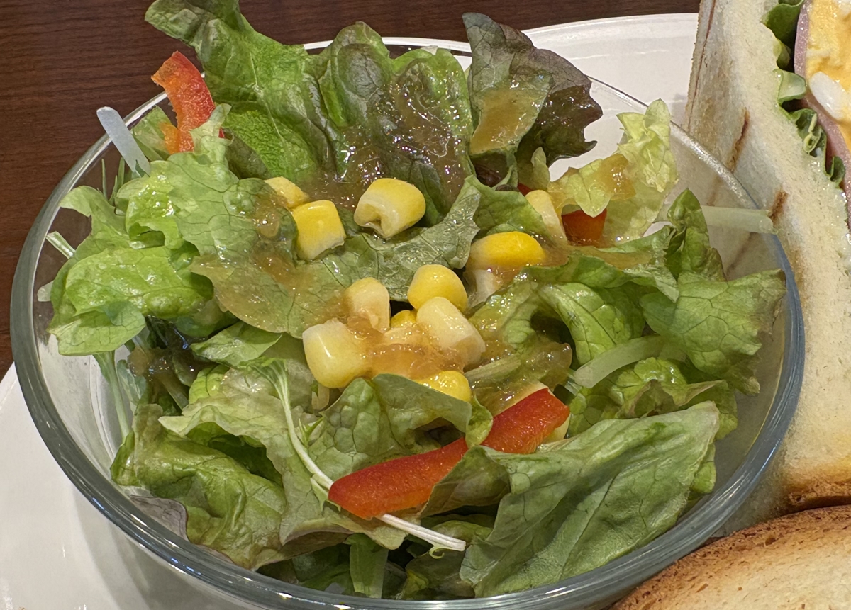珈琲館のサラダのポイントは、上にちゃちゃっっと乗っているコーンだと思う。
