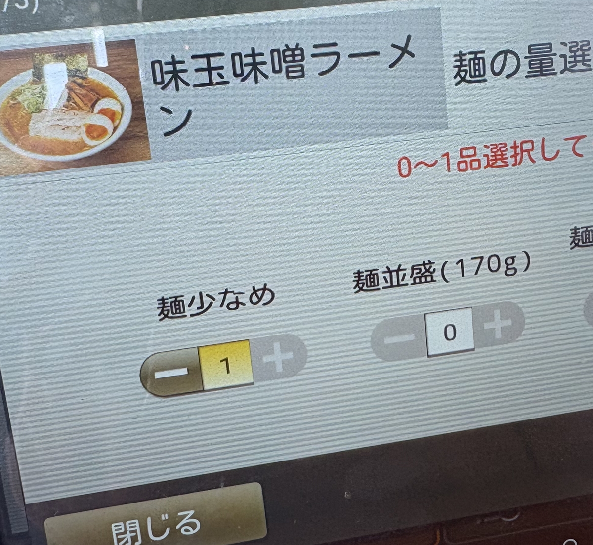 あ、麺少な目できる。ポチッとな。