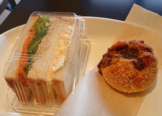 ミックスサンド220円+焼きカレーパン190円+アイスコーヒー100円