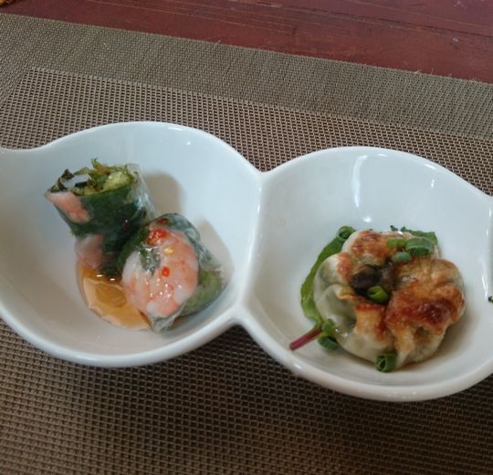生春巻きと海老餃子は