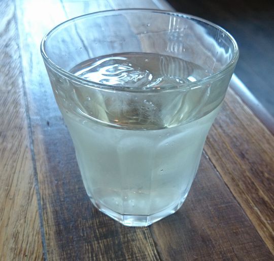 サービスの冷たいお茶を飲み飲み