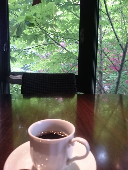 初夏の緑を眺めながらボー。
