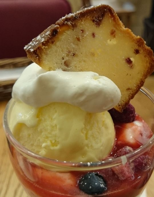 甘く酸味ある苺ソースが美味しく