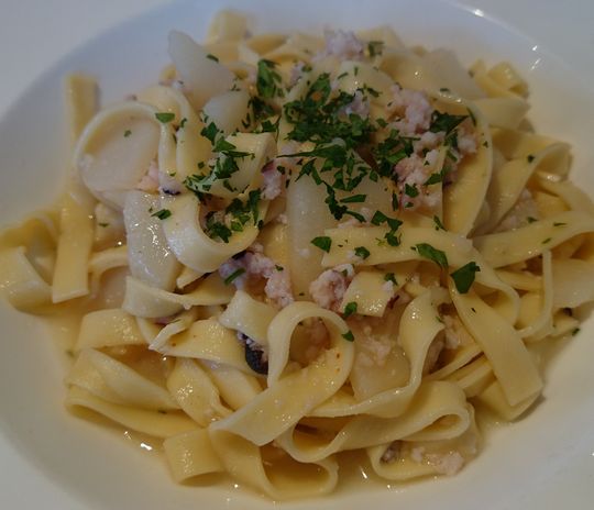 パンと共に、手打ちのタリアテッレ タコのミンチとジャガイモのソース登場。