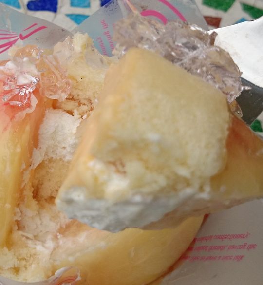 このスポンジが、果汁とシロップとクリームに包まれて
