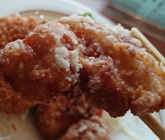 鳥唐3個あるから、先に一個、中間地点で一個、ラストの〆に一個食べよう。