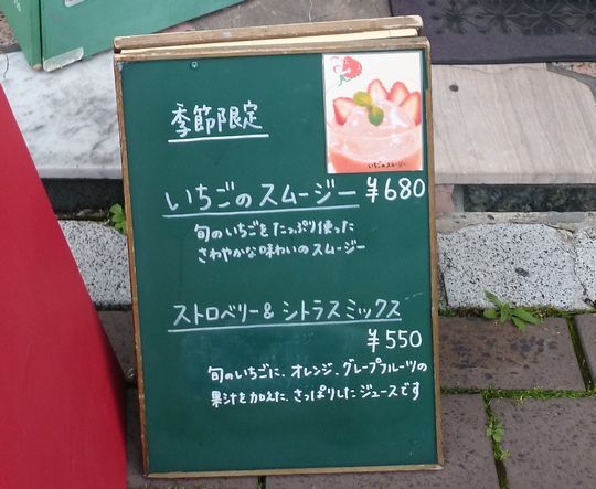 あれ、中間地点にあるのは、いちごのスムージーかな。