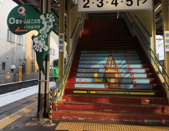 駅の待合室の座布団の柄まで気合いが入ってますね。