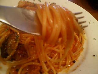 スパイシーで奥深い味のトマトソースがセクシーに絡んで